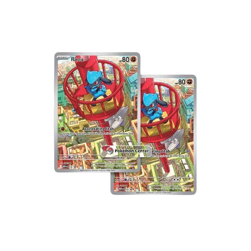 1 x full-art foil promo card featuring Riolu with a Pokémon Center logo