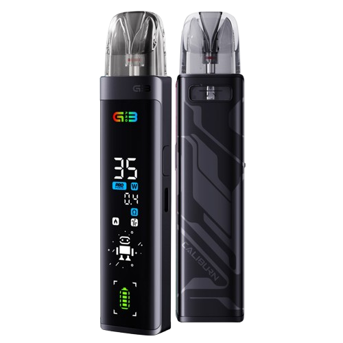 CALIBURN G3 PRO, the first-ever full-screen device. The full-screen UI design, featuring a dynamic interface, showcases technological sophistication and interactivity, allowing you to view all vaping details at a glance. Partnered with the newest 3ML-0.4ohm CALIBURN G3 cartridges, CALIBURN G3 PRO slays the game with unbeatable flavor, adjustable 35 W max output power, and unparalleled vision enjoyment.